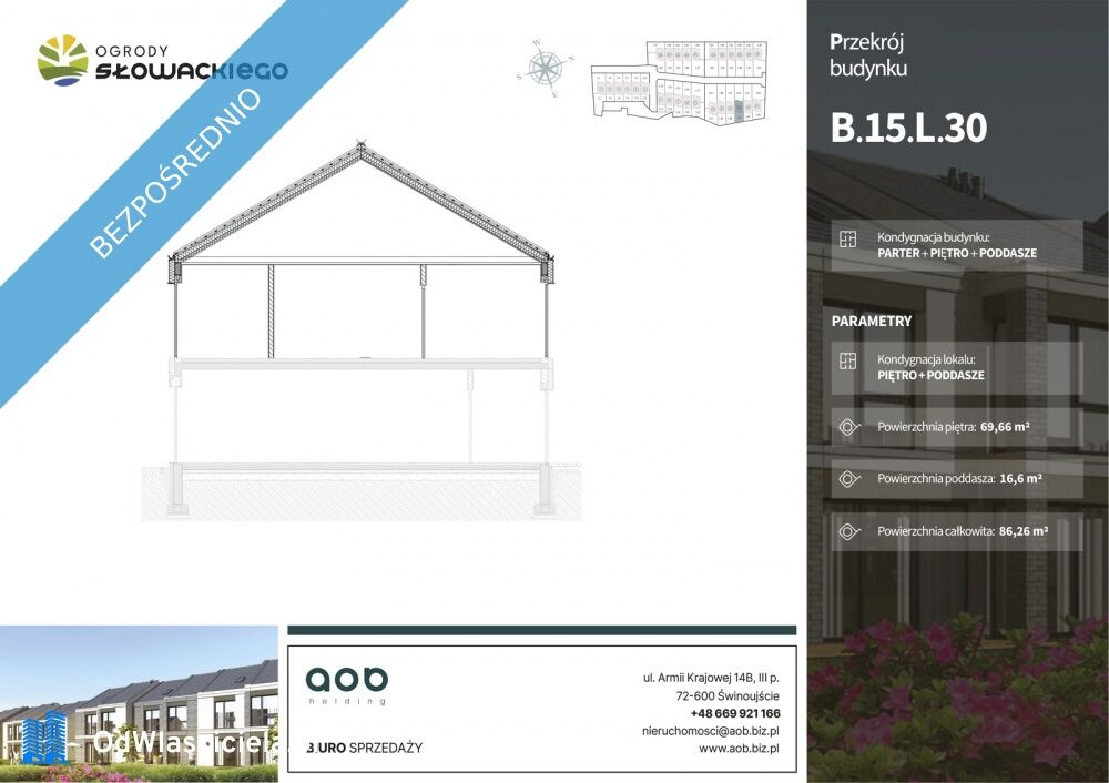 W cenie lokalu mieszkalnego, dodatkowo do własnej adaptacji będzie poddasze o wielkości 16,60 m², co łącznie daje powierzchnię 86,26 m².