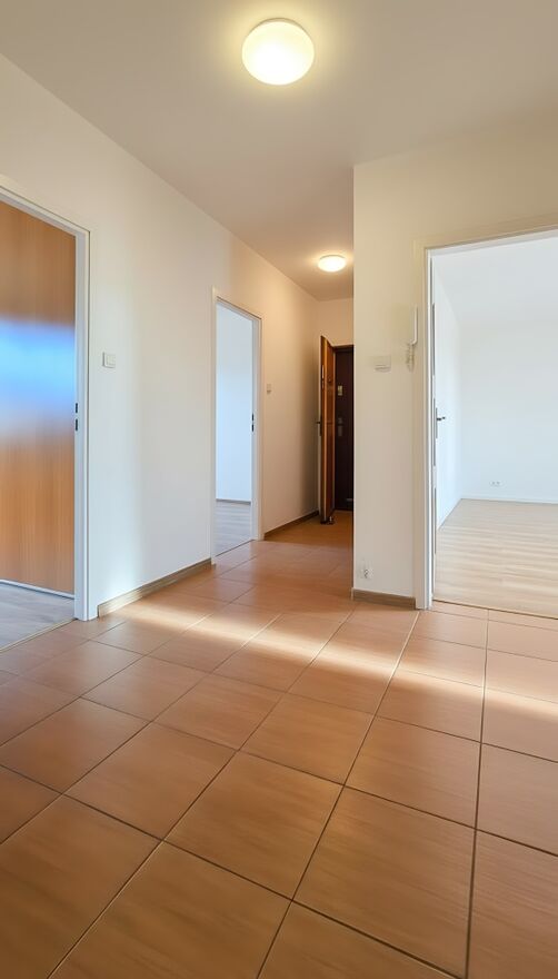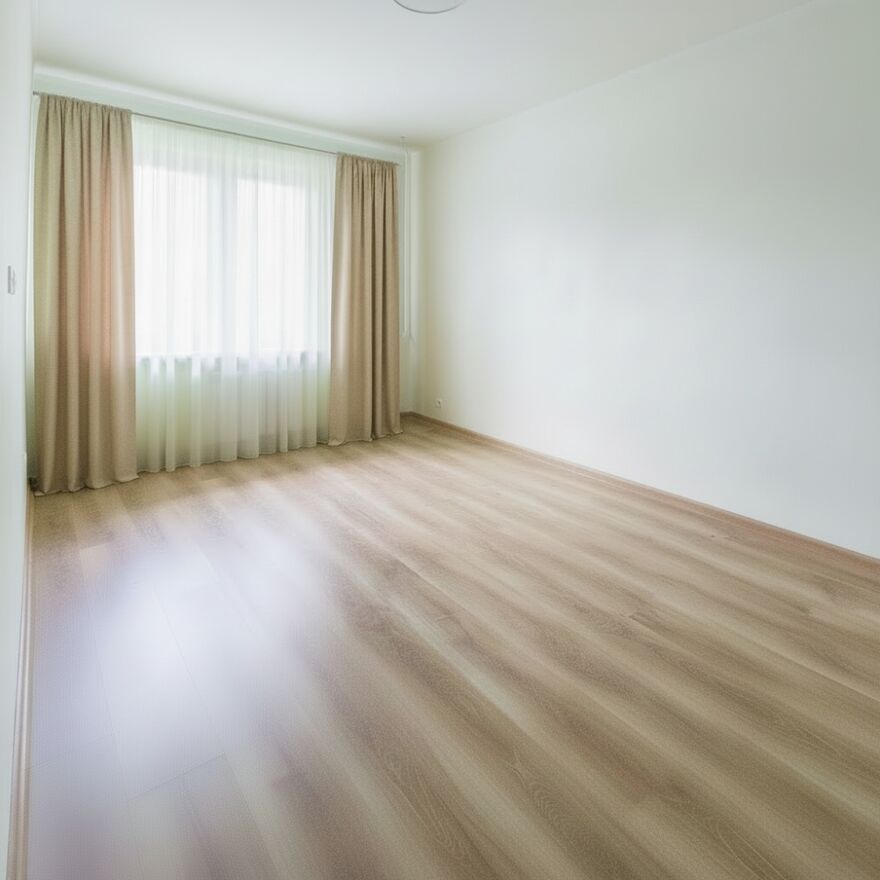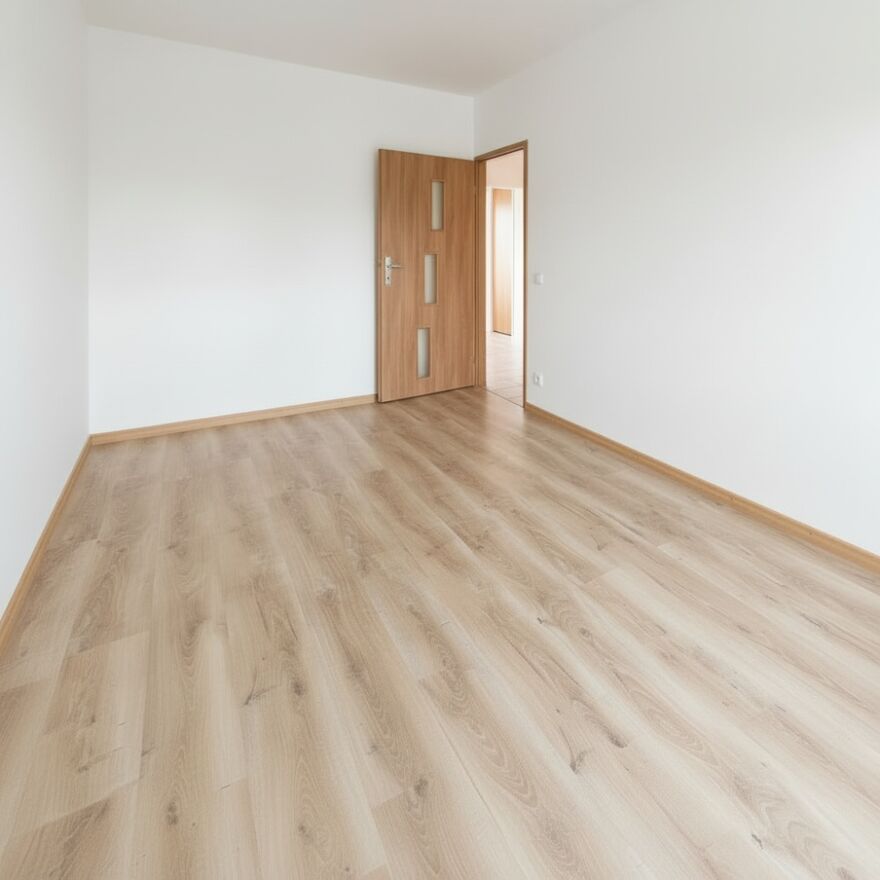 • Spójne wykończenie: jasne ściany i panele w ciepłym odcieniu drewna – mieszkanie gotowe do wprowadzenia po umeblowaniu.